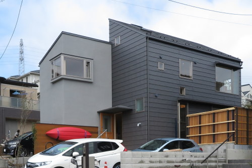 玄関先に設置されたカヤック。差し色になって綺麗です。