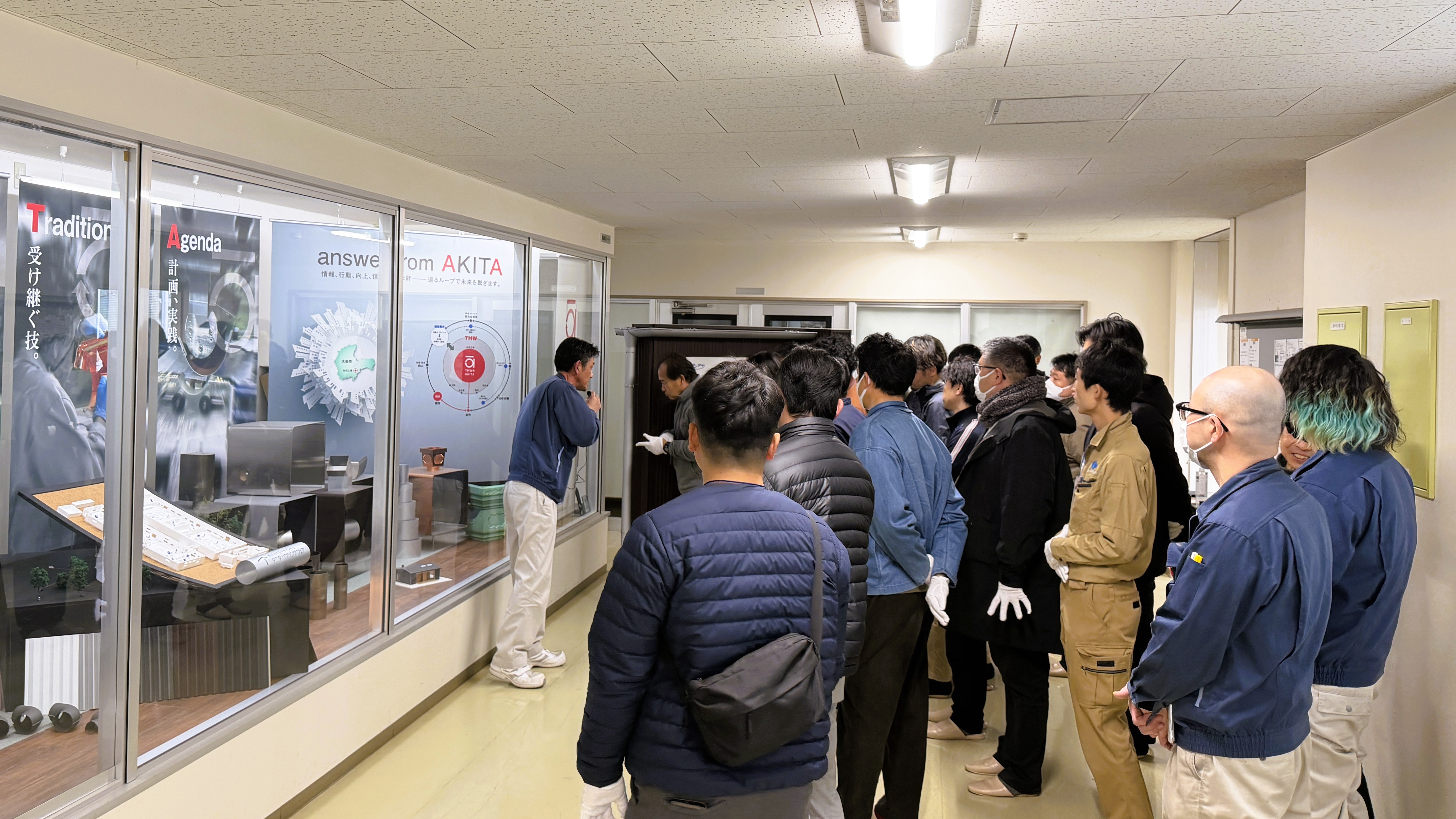 秋田工場のショールームを抜けて