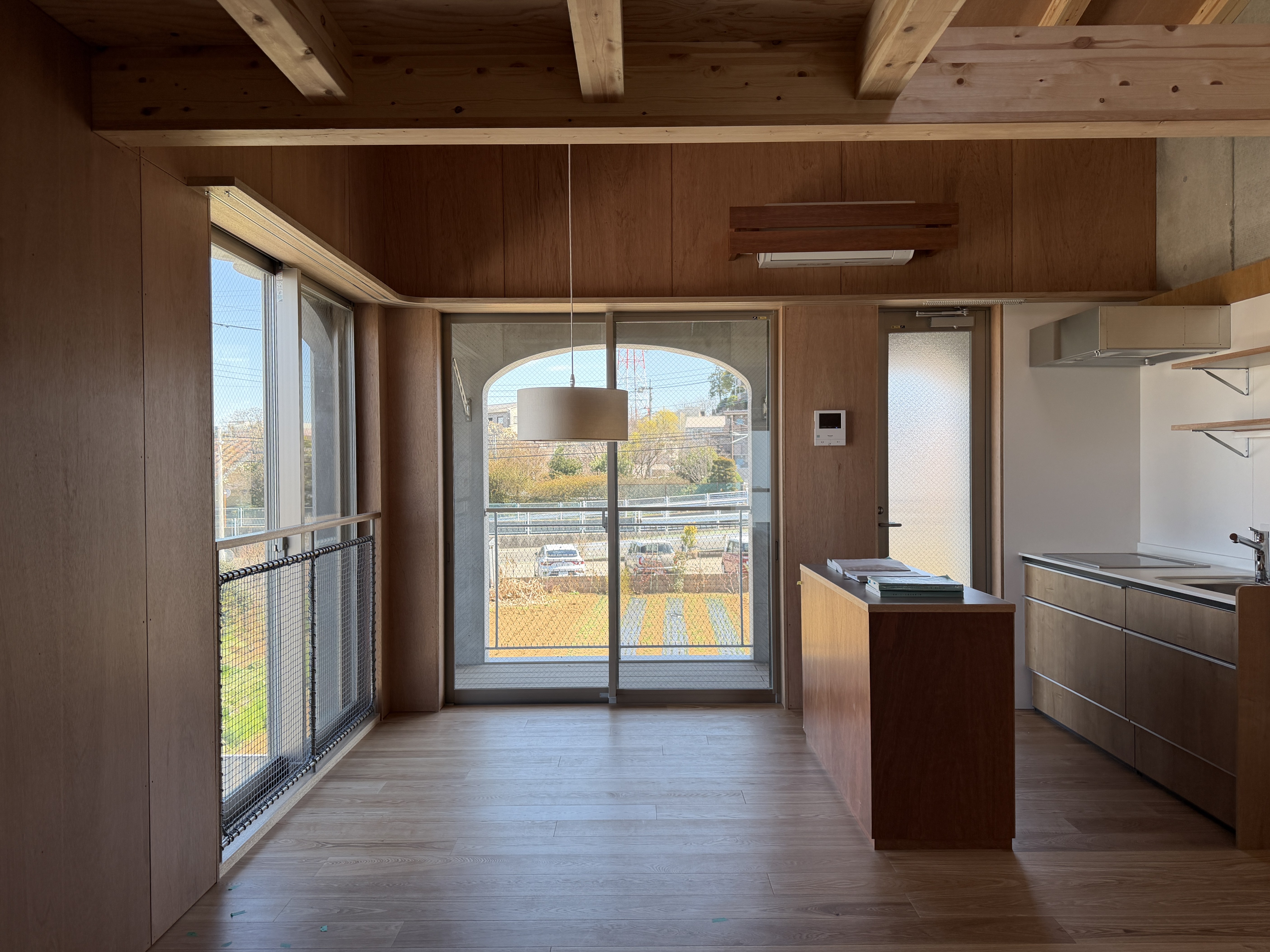 木の質感がいいですね 窓先の畑とも合っている感じ